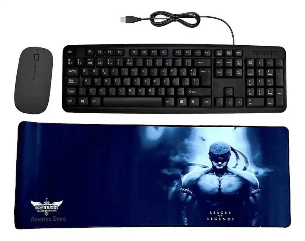 America Store te trae Combo de Teclado En Español Alambrico + Mouse Inalámbrico Ultra Delgado + Pad Mouse Antideslisante 79cm x 30cm CARACTERÍSTICAS MOUSE: Especificaciones: Interfaz USB 2.0 Trabajo: Óptico Voltaje de funcionamiento: 5V Número de teclas: 3 Resolución óptica: 1000DPI Ergonomía: Soporte Tamaño del producto aproximadamente 11.5 * 7 * 3.5 cm CARACTERÍSTICAS TECLADO: El teclado Multimedia más reciente en color negro, es compatible con sistemas Windows para mejorar su uso. El delgado diseño de las teclas brinda una excelente experiencia de escritura. Teclado estándar. Teclas delgadas para reducción de ruido. CARACTERÍSTICAS PAD MOUSE: Los bordes cosidos duraderos y la textura premium de alta densidad que se procesó en una cámara de alta temperatura 230 ° F para garantizar un uso a largo plazo sin deformación y desgomado. Tela en la cubierta para un deslizamiento suave. Se ha optimizado con un movimiento rápido, manteniendo una excelente precisión y control. Es compatible con ratones mecánicos y ópticos. Revestimiento impermeable: Previene eficazmente los daños causados por las bebidas derramadas u otros accidentes. Cuando el líquido salpica en la superficie del recubrimiento, se forma en gotas de agua y se desliza hacia abajo. Goma antideslizante Base: La base de goma natural antideslizante Suave y densa mantiene la almohadilla firmemente en su lugar. Proporciona un funcionamiento estable del ratón. Garantía del vendedor: 3 meses