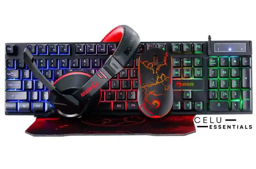 Combo 4 en 1 - Teclado Gamer con Mouse, Mousepad y Audífonos Diadema Incluye: - Tablero con luces - Audífonos - Mouse con diseño - Mousepad