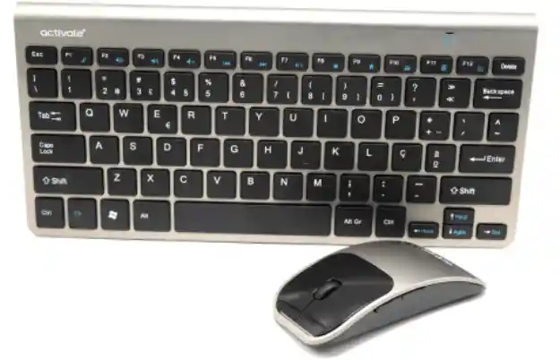 Combo mini inalámbrico tipo mac, mouse óptico 5d (5 botones), diseño elegante, base luxury, delgado y de peso muy ligero, fácil de transportar y de usar, plug and play, disponible en color: Luxury.
