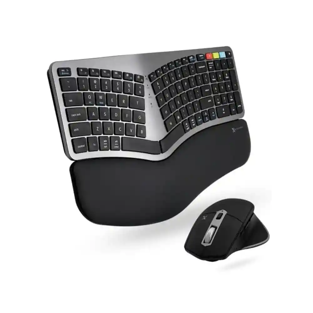 Optimizado para mayor comodidad Con un cojín de muñeca integrado, diseño dividido en "2 zonas", 4 soportes para varios ángulos de escritura y un mouse esculpido para tu mano, nuestro combo de teclado y mouse Bluetooth ofrece la máxima comodidad. Conecta hasta 3 dispositivos Con 2 canales para Bluetooth y 1 canal para 2.4Ghz, nuestro combo de teclado inalámbrico y mouse te permite emparejar y cambiar entre 3 dispositivos a la vez. El teclado ergo consta de un interruptor de tijera de 100 teclas con 14 accesos directos mientras que el mouse ergonómico tiene 6 botones con 4 modos dpi. Combinado, el combo inalámbrico de mouse y teclado mejora la productividad. Recharge and Go Ambos componentes del juego de teclado y mouse inalámbricos ergonómicos están equipados con baterías recargables que utilizan un puerto USB-C. (Cable de carga incluido)
