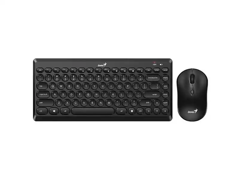 Nombre del modelo LuxeMate Q8000 Frecuencia RF 2,4 GHz Tipo de tecla Tecla redonda delgada Teclas de función Sí, 12 (8 de audio, 4 de Internet) Teclas multimedia No Motor de sensor de ratón Óptico Resolución del ratón (DPI) 800, 1200, 1600 Ratón número de botones 3 (izquierda, derecha, botón central con desplazamiento) Otro - Peso (g) Teclado: Aprox. 351 gramos Ratón: aprox. 56 gramos Dimensiones (An. x Al. x Pr.) mm (pulgadas) Teclado: 318,6 x 143,6 x 20,5 mm (12,54 X 5,65 X 0,80 pulgadas) Ratón: 60,8 x 100,3 x 37 (2,39 x 3,94 x 1,45 pulgadas) Manual de usuario Sí, LuxeMate Q8000 (Multi-idioma) Descargar Requisitos del sistema Windows® 8, 10, 11 o posterior / Mac OS X 10.8 o posterior / Puerto USB disponible Colores Negro *El color del producto y las imágenes que se muestran en el paquete son ÚNICAMENTE de referencia. Para artículos reales, consulte los bienes físicos contenidos en este documento. Qué incluye Teclado inalámbrico LuxeMate Q8000 Ratón inalámbrico LuxeMate Q8000 Receptor USB Pilas AAA para teclado x2 Pilas AAA para ratón x 1 Guía rápida en varios idiomas
