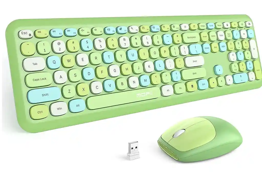 110 teclas, diseño encantador y portátil. Reemplace las teclas de función que rara vez se usan por teclas de combinación, lo que ahorra espacio y hace que su escritorio esté limpio. 6 tipos de colores mezclados para la opción, siempre hay uno que te guste. Conexión inalámbrica estable de 10 metros, admite un receptor USB para controlar el teclado y el mouse simultáneamente, plug and play, no se requiere la unidad. La tecnología inalámbrica 2.4G tiene una fuerte capacidad antiinterferente, proporciona una transmisión de señal estable. Diseño ergonómico, se adapta a la curva de la palma de la mano, más cómodo. Número de teclas: 110 piezas Conexión: inalámbrico de 2,4 ghz Distancia de trabajo: 10 m Interfaz del receptor: USB Compatible con el sistema: Windows XP / Win7 / 8/10 Tamaño del teclado : aproximadamente 443 * 138 * 29 mm Peso: aproximadamente 615 g Ratón: Tamaño: aproximadamente 103 * 69 * 35 mm Peso: aproximadamente 75 g