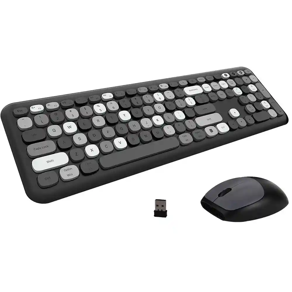 110 teclas, diseño encantador y portátil. Reemplace las teclas de función que rara vez se usan por teclas de combinación, lo que ahorra espacio y hace que su escritorio esté limpio. 6 tipos de colores mezclados para la opción, siempre hay uno que te guste. Conexión inalámbrica estable de 10 metros, admite un receptor USB para controlar el teclado y el mouse simultáneamente, plug and play, no se requiere la unidad. La tecnología inalámbrica 2.4G tiene una fuerte capacidad antiinterferente, proporciona una transmisión de señal estable. Diseño ergonómico, se adapta a la curva de la palma de la mano, más cómodo. Número de teclas: 110 piezas Conexión: inalámbrico de 2,4 ghz Distancia de trabajo: 10 m Interfaz del receptor: USB Compatible con el sistema: Windows XP / Win7 / 8/10 Tamaño del teclado : aproximadamente 443 * 138 * 29 mm Peso: aproximadamente 615 g Ratón: Tamaño: aproximadamente 103 * 69 * 35 mm Peso: aproximadamente 75 g