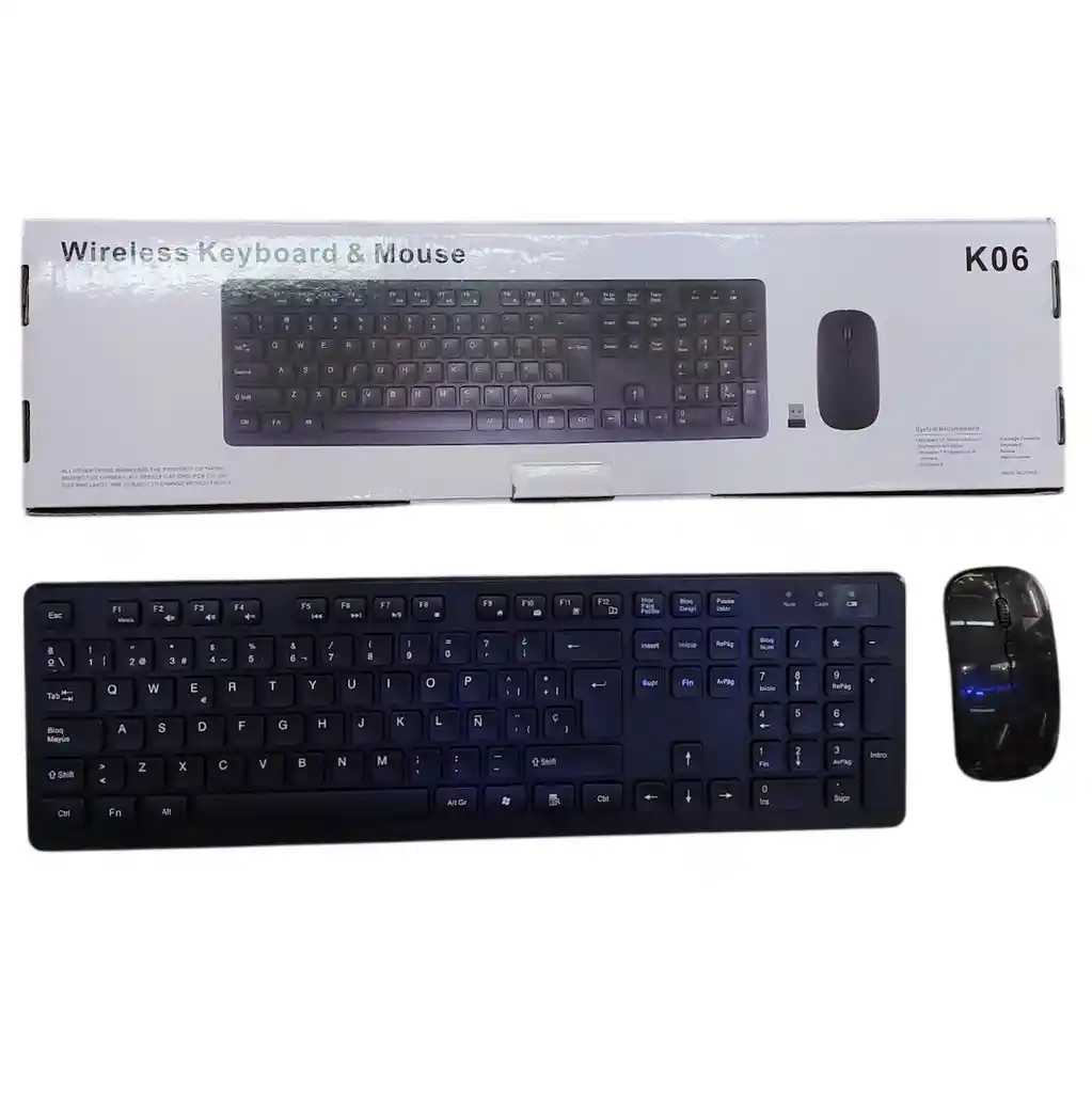 Combo Teclado y Mouse Inalambrico Negro K06 Wireless Keyboard & Mouse Combo Kit Conexion Usb