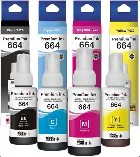 TINTAS GENERICAS MARCA EPSON COMBO 4 COLORES REF 664 COMPATIBLE CON IMPRESORAS EPSON L110, L120, L210, L220, L355, L365, L375, L380, L390, L395, L465, L555, L565, L575