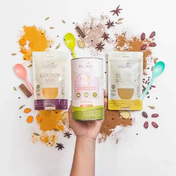 Lleva estos tres poderosos productos con todos sus beneficios con un precio especial: Incluye: ❥ 1 GOLDEN MILK PADAM: Es una deliciosa receta inspirada en la medicina ayurveda y originaria de la India, tiene múltiples beneficios para cuerpo, mente y espíritu, considerándose gran aliada para la salud y belleza. Mezcla ya lista para preparar GOLDEN MILK PADAM, solo debes poner una cucharada en tu leche de preferencia caliente o fría. ❥1 GOLDEN MILK COCOA PADAM 100 GR: Es una mágica combinación de todos los beneficios de la famosa y milenaria GOLDEN MILK con el cacao y endulzada con FRUTO DEL MONJE ó MONK FRUIT, conocido como el fruto de la LONGEVIDAD, una opción 100% natural con gran valor nutricional. Disfruta del toque achocolatado de esta versión especial de PADAM de LECHE DORADA. Prepárala caliente, fría, en agua en leche o en diferentes recetas y preparaciones. ❥1 MAGIC CHAI PADAM X 100 GR PADAM : MAGIC CHAI es una mezcla sinérgica de 8 especias y 4 superalimentos para preparar la deliciosa y famosa bebida de la INDIA el MASSALA. Nuestra combinación está diseñada para reconfortarte, darle un BOOST a tu sistema inmunológico, entre otros beneficios. Hemos incluido en nuestro CHAI ingredientes ADAPTOGENOS como REISHI (ganoderma lucidum) y la Ashwaganda; los adáptatenos son sustancias que ir te ayudan a responder mejor ante el estrés y muchos desafíos físicos y mentales actuales.