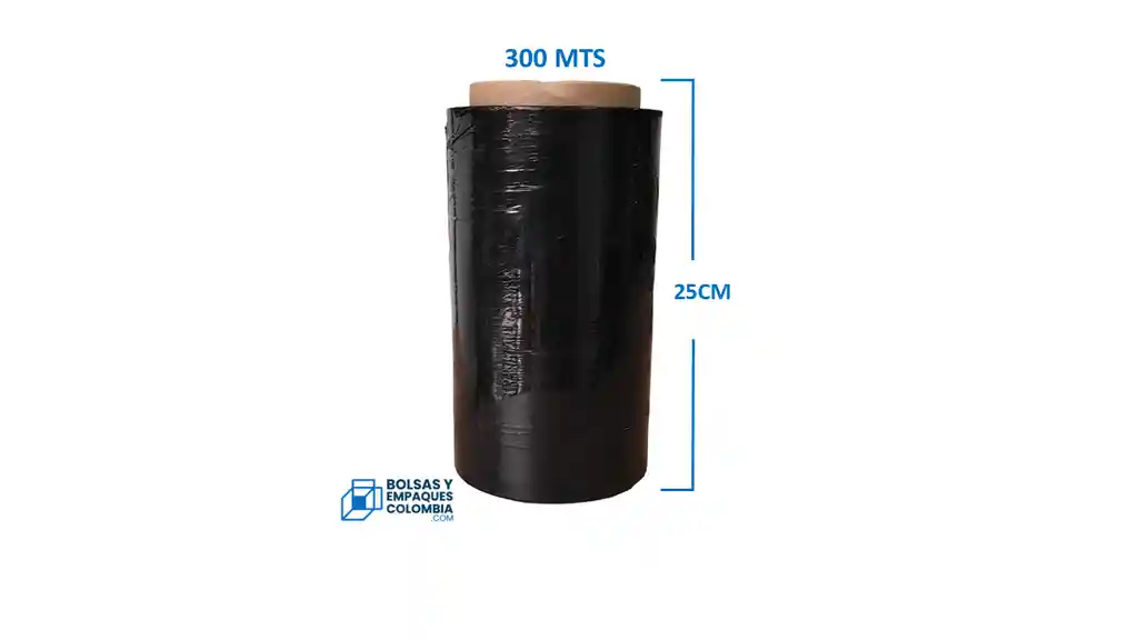 "¡¡¡¡BOLSAS Y EMPAQUES COLOMBIA!!!! El plástico stretch o vinipel, es un polietileno que es usado para procesos de empaque y embalaje que van desde reforzar la seguridad y empaque de una caja hasta la sujeción y protección de productos estibados de varias toneladas de peso. Color: Negro Largo: 300 Metros Ancho: 25cm Calibre: 7mm Excelente calidad Paca x 20 Unidades Puedes pasar a recoger tú pedido Entrega inmediata Envíos a todo el país. ¡¡¡LO VALIOSO ESTÁ POR DENTRO!!!"