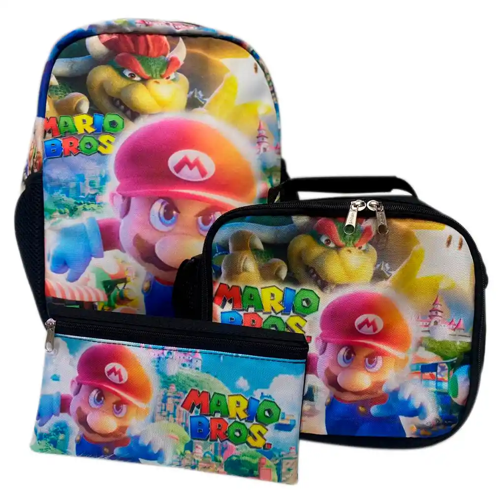 Detalles • Material fácil limpiar • Tirantes ajustables y acolchados para mayor comodidad al transportar • Bolsillos laterales de mayas • Cremallera reforzada • Altos detalles • Lonchera reforzada • Interior térmico Aislante frio y caliente • Correa ajustable Medidas Aproximadas • Morral 36 ALTO X LARGO 32 X PROFUNDO 12 CM. • Cartuchera Largo 23,5 cm x Alto 13 cm • Lonchera 16 cm x 24 cm x 22 cm • Peso 1 kg