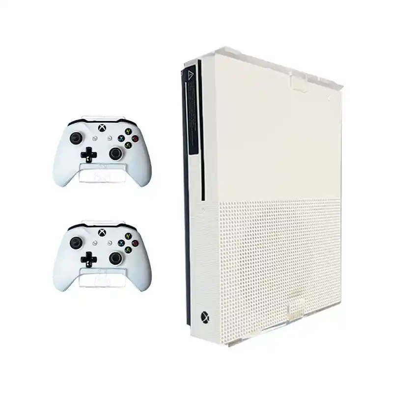"Disfruta de nuestro increíble Combo Soporte Xbox One S para tu consola de videojuegos y optimiza tus espacios con HangerTech. Incluye: Soporte de pared para consola Xbox One S 2 Soportes universales para Controles."