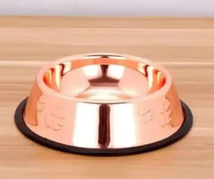 Plato comedero fabricado en acero inoxidable , ideal para servir alimento o agua a perros y gatos. Cuenta con base antideslizante , que evita que el plato se desplace mientras viene la mascota. Es resistente, duradero y muy fácil de limpiar, ideal para uso diario. Características: Material: acero inoxidable Base antideslizante Material libre de BPA y PVC No tóxico No apto para microondas Ideal para comida y agua Diseño funcional y duradero Especificaciones: Diámetros 18 cm (según tamaño seleccionado) Capacidad aproximada: 210 g / 800 ml Color: Oro rosa metálico Producto práctico y seguro, perfecto para el cuidado diario de perros y gatos.