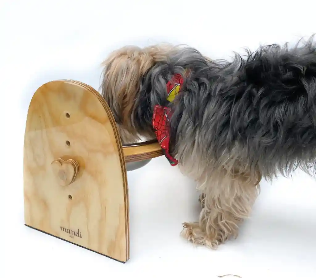 Puedes ajustar este comedero a la altura que tu peludito lo requiera, además de darle la inclinación perfecta! Tenemos dos tamaños de comederos ajustables. -El pequeño se puede ajustar a 10cm, 14cm, 18cm y 22cm. Altura mascota 15cm a 40cm ej: gato, shihtzu.bulldog, westie.cocker, bostón. -El grande se puede ajustar a 22cm, 26cm, 30cm y 34cm. Altura mascota 41cm a 65cm ej: bull terrier, pitbull.golden, pastor australiano.husky, border collie. ¡Haz que el momento de la alimentación sea más agradable y placentero para tus peludos con este hermoso comedero elevado, fabricado a mano con amor y en Colombia! Beneficios comedero elevado: -Mantiene una postura más natural al comer -Reduce la tensión en su cuello y articulaciones -Estimula la digestión efectiva -Reduce los casos de problemas gastrointestinales como hinchazón y regurgitación -Evita el reflujo -Ayuda en el periodo de la vejez Características: -Es anti-deslizante -100% resistente a la humedad (Pino, triplex resinado) -Higiénico -Fácil de limpiar -Alta calidad -Diseño innovador y personalizado.