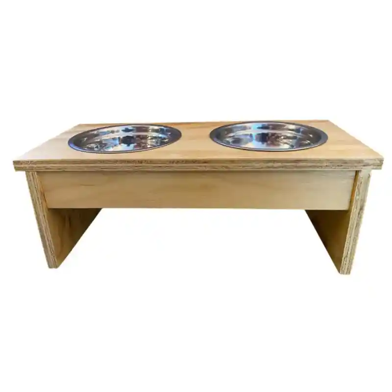 Elegancia, resistencia y comodidad para tu mascota. Este comedero elevado está fabricado en madera tríplex fenólico inmunizado, lo que lo hace duradero, resistente a la humedad y apto para uso prolongado. Su diseño elevado (15 cm) favorece una mejor postura al comer y beber, ayudando a la digestión y al bienestar de tu perro o gato de tamaño pequeño. Incluye dos recipientes de acero inoxidable de 14 cm de diámetro, fáciles de retirar y limpiar. ✅ Madera tratada e inmunizada contra humedad y hongos ✅ Diseño elevado para una postura ergonómica ✅ Ideal para razas pequeñas ✅ Recipientes de acero inoxidable removibles ✅ Acabado estético y funcional