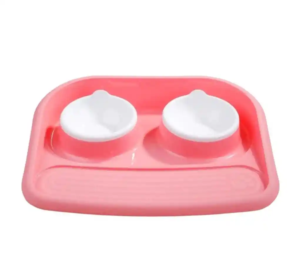 Comedero y bebedero doble anti reguero para perros y gatos, bandeja plástica con platos removibles fáciles de limpiar.