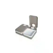 Cargador en lona durable, impermeable que soporta 8 kg de peso, de base rígida. Con sistema para colocar en la extensión de la maleta de viaje. Con broches para fijar al cinturón de seguridad del carro.