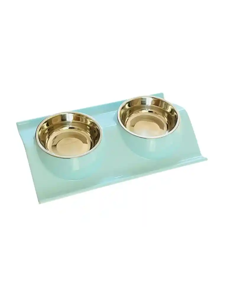 Comedero doble para perros y/o gatos color Azul. Plato interno en acero inoxidable.