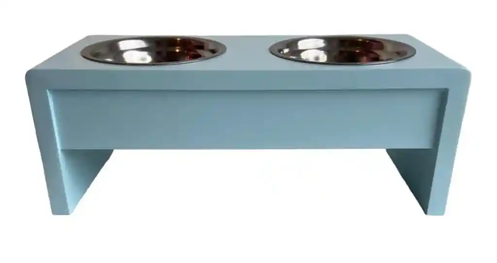 Comedero en madera MDF de 18 mm con sellador y pintura poliuretano blanca, Cocas en aluminio de 14 cm de diámetro x 4.5 de profundidad. Alto: 10 cm