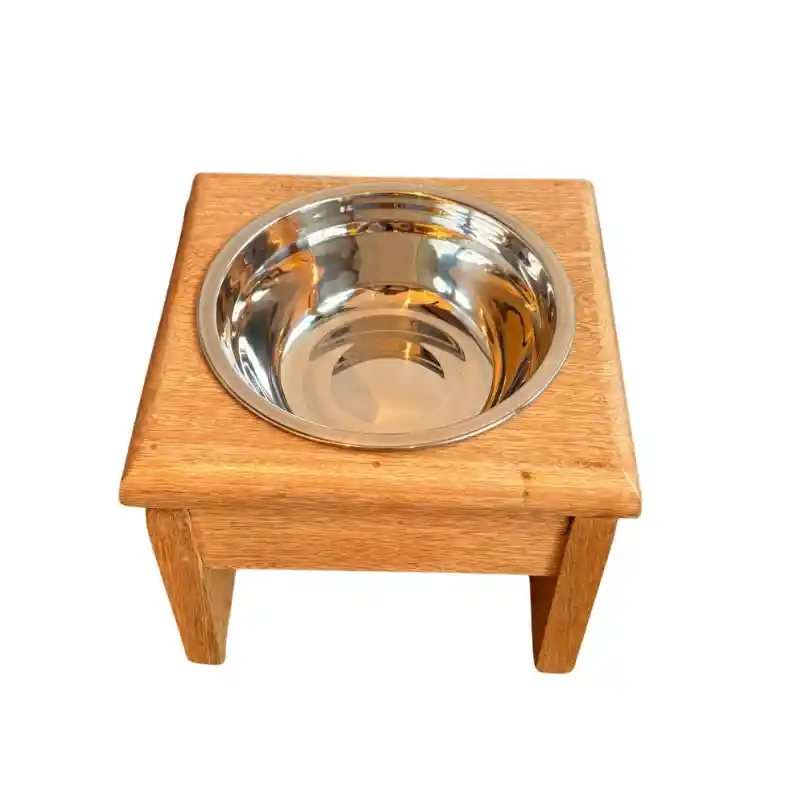 Elegante y funcional comedero individual para mascotas, elaborado en madera roble con tratamiento especial que ayuda a proteger la superficie contra el deterioro causado por salpicaduras de agua y humedad. Su diseño combina estilo y practicidad, convirtiéndolo en una opción ideal para quienes buscan un accesorio duradero que armonice con la decoración del hogar. Incluye un recipiente en acero inoxidable, resistente, higiénico y fácil de retirar para una limpieza rápida y cómoda. ✨ Características principales: Base en madera roble de alta calidad Tratamiento especial contra humedad y salpicaduras Incluye recipiente en acero inoxidable Fácil de limpiar y mantener Diseño moderno y decorativo Ideal para perros y gatos Perfecto para ofrecer alimento o agua con mayor estabilidad y estilo. El comedero/Bebedero en talla S mide 15 cm de alto, el recipiente mide 14 cm de diámetro