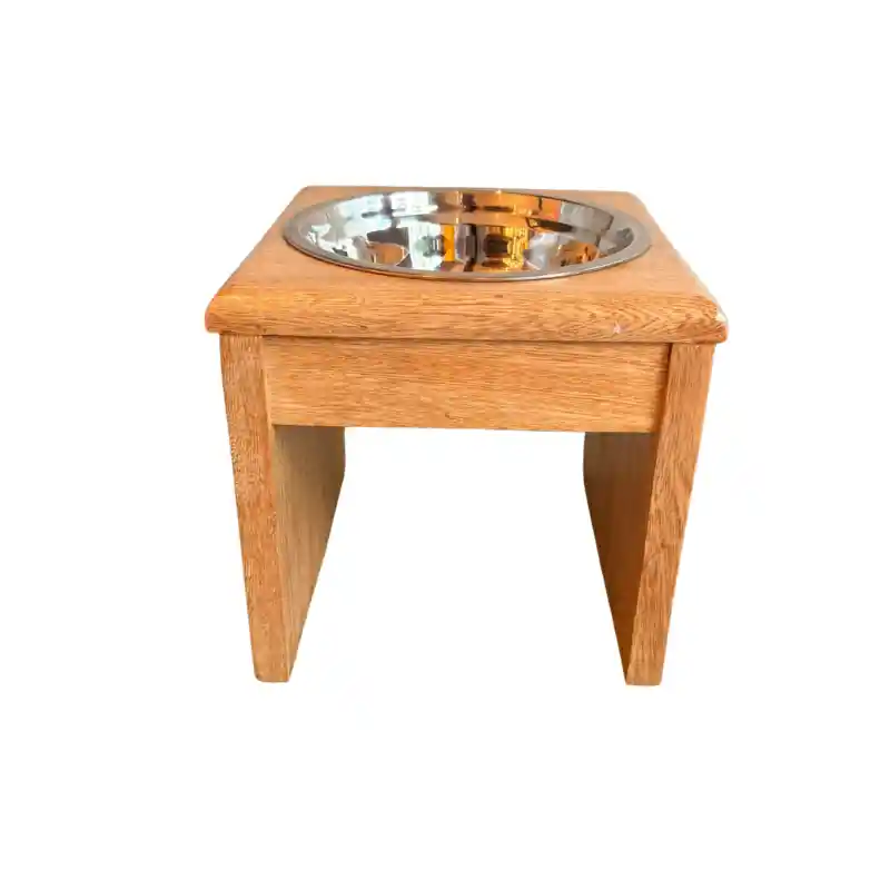 Elegante y funcional comedero individual para mascotas, elaborado en madera roble con tratamiento especial que ayuda a proteger la superficie contra el deterioro causado por salpicaduras de agua y humedad. Su diseño combina estilo y practicidad, convirtiéndolo en una opción ideal para quienes buscan un accesorio duradero que armonice con la decoración del hogar. Incluye un recipiente en acero inoxidable, resistente, higiénico y fácil de retirar para una limpieza rápida y cómoda. ✨ Características principales: Base en madera roble de alta calidad Tratamiento especial contra humedad y salpicaduras Incluye recipiente en acero inoxidable Fácil de limpiar y mantener Diseño moderno y decorativo Ideal para perros y gatos Perfecto para ofrecer alimento o agua con mayor estabilidad y estilo. El comedero/Bebedero en talla M mide 20 cm de alto, el recipiente mide 16 cm de diámetro