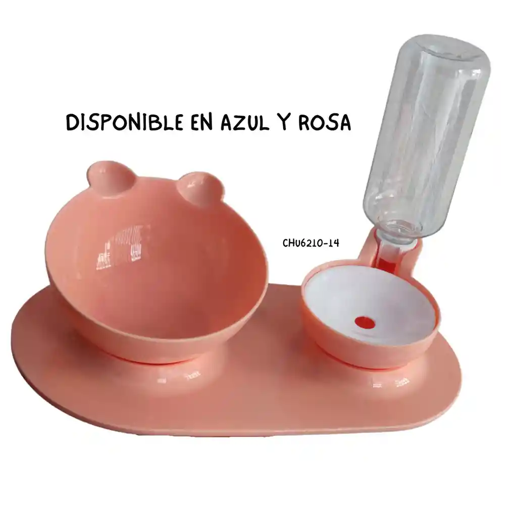 Comedero con dispensador de agua, disponible en color ROSA y AZUL.