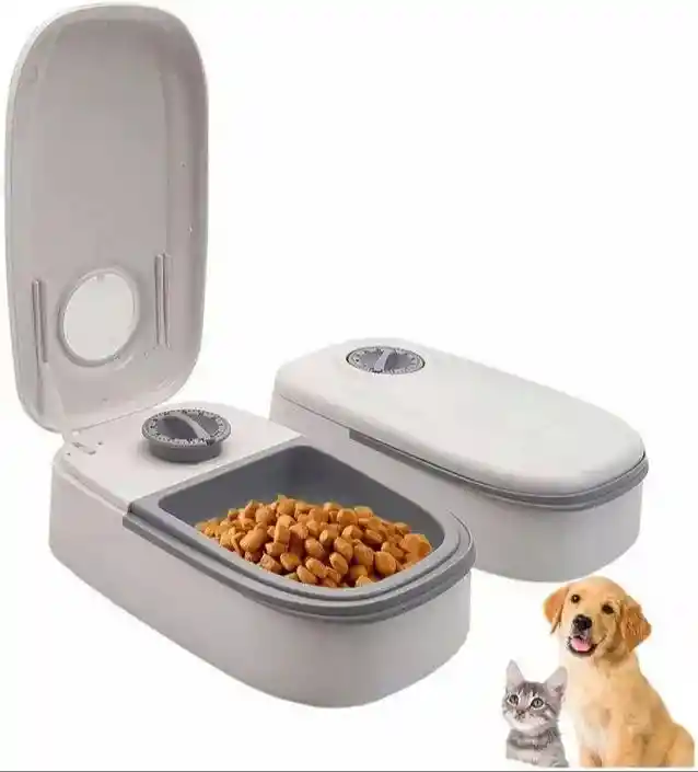 Este comedero automático con temporizador es ideal para gatos y perros pequeños a medianos, permitiendo programar hasta dos comidas en porciones con un retraso de hasta 48 horas. Su diseño silencioso evita ruidos molestos, y su funcionamiento con pilas AA lo hace fácil de usar sin necesidad de cables. Cuenta con una bandeja extraíble sin BPA apta para lavavajillas, asegurando una limpieza sencilla y segura. Además, incorpora un espacio para colocar bolsas de hielo, manteniendo la comida fresca por más tiempo. Fabricado en plástico ABS resistente, es duradero y práctico para establecer hábitos alimenticios regulares en tu mascota. Ficha Técnica: Dimensiones: 25 cm x 27.5 cm x 7 cm Material: Plastico ABS Funcionamiento : 1 pila AA