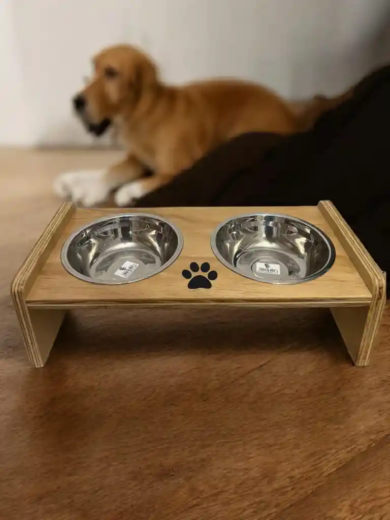 Comedero Doble Alto De Madera Para Mascotas