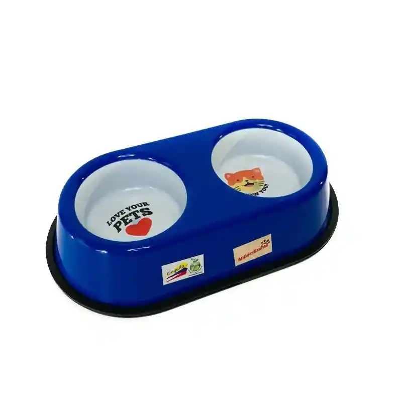 COMEDERO DOBLE REDONDO BICOLOR con base de goma completamente antideslizante. Ideal para perros 🐕 y gatos*🐈 disponible en tres tamaños Grande, Mediano y Pequeño. Producto no tóxico, biodegradable y amigable con el medio ambiente🐾 IMAGEN DE REFERENCIA: Colores y estampado varían según disponibilidad del momento. *Para gatos se recomienda el tamaño pequeño.