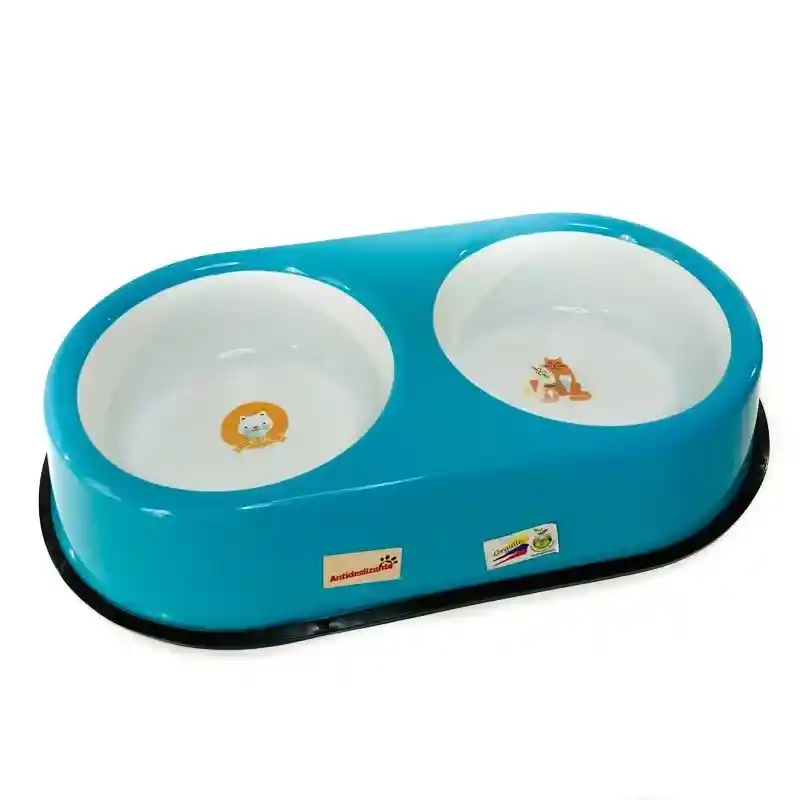COMEDERO DOBLE REDONDO BICOLOR con base de goma completamente antideslizante. Ideal para perros 🐕 y gatos*🐈 disponible en tres tamaños Grande, Mediano y Pequeño. Producto no tóxico, biodegradable y amigable con el medio ambiente🐾 IMAGEN DE REFERENCIA: Colores y estampado varían según disponibilidad del momento. *Para gatos se recomienda el tamaño pequeño.