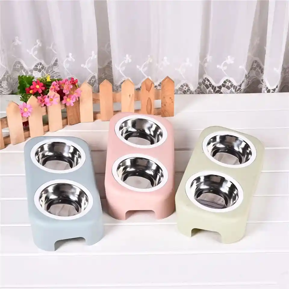 Comedero doble e inclinado Comedero a doble tazón, para que tú mascota pueda tener tanto el alimento como el agua, o doble alimento si son dos mascotas Este comedero cuenta con una pequeña inclinación, que podría ayudar a mejorar la digestión de tú mascota