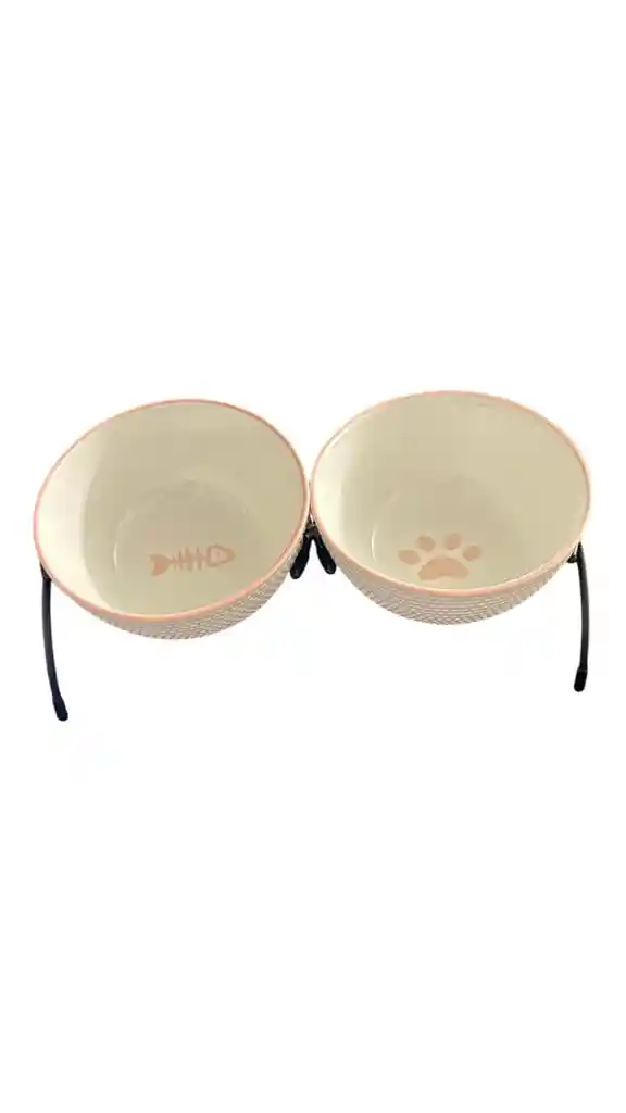 Comedero para gatos y/o perros doble, elevado color rosado.