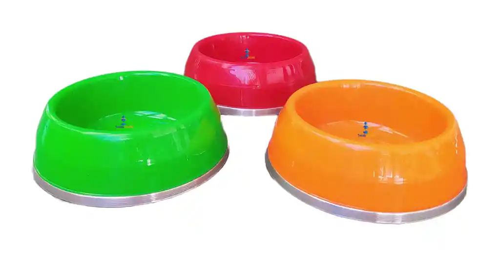 Comedero o bebedero pesado en pasta con base en aluminio. Medidas: Diámetro interno: 13cm Diámetro en la base: 17cm Alto: 7 cm Peso Aprox: 1100gr