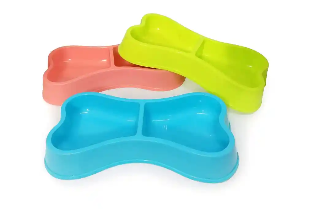 Práctico y divertido, ideal para servir agua y comida al mismo tiempo. Fabricado en plástico resistente. Diseño atratico en forma de hueso, disponible en varios colores vibrantes.