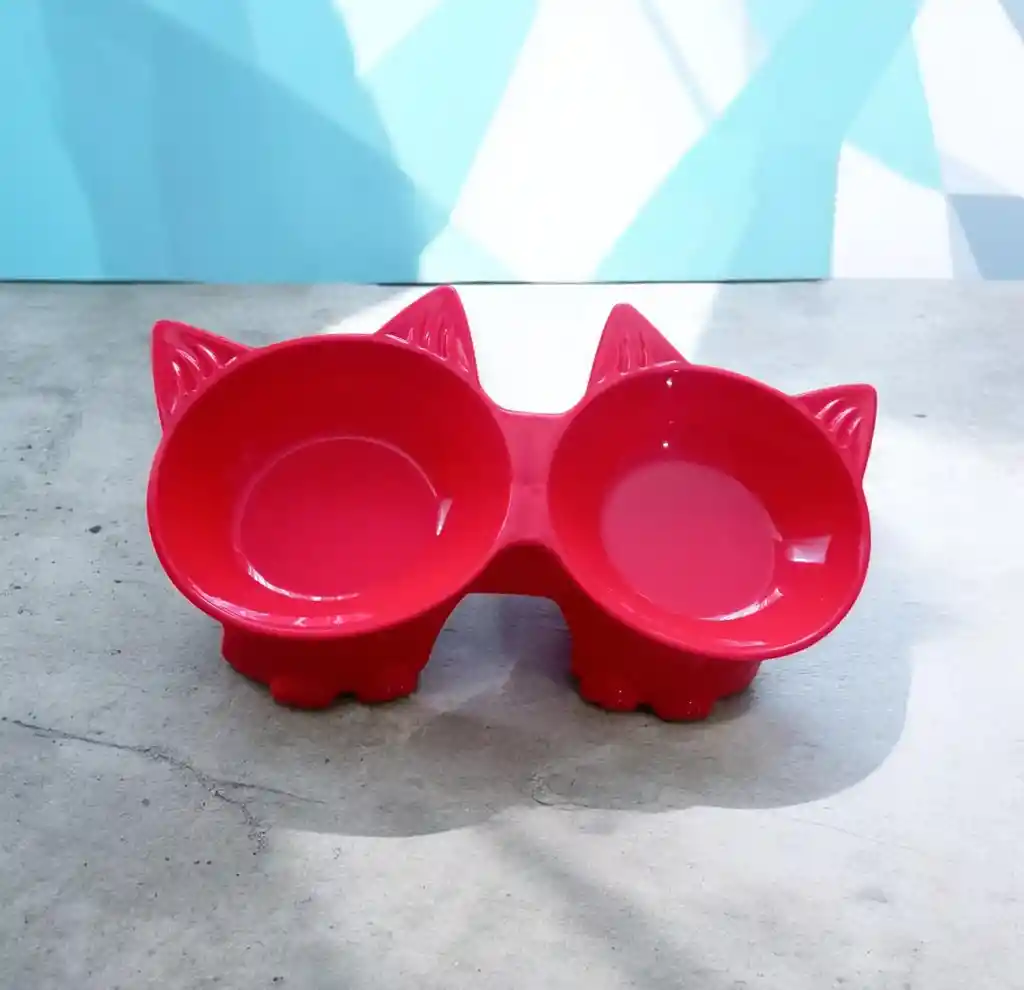Hermoso comedero ponbo con base alta para gatos color rojo ideal para mantener la postura de tu mascota al comer y mejorar la deglución.