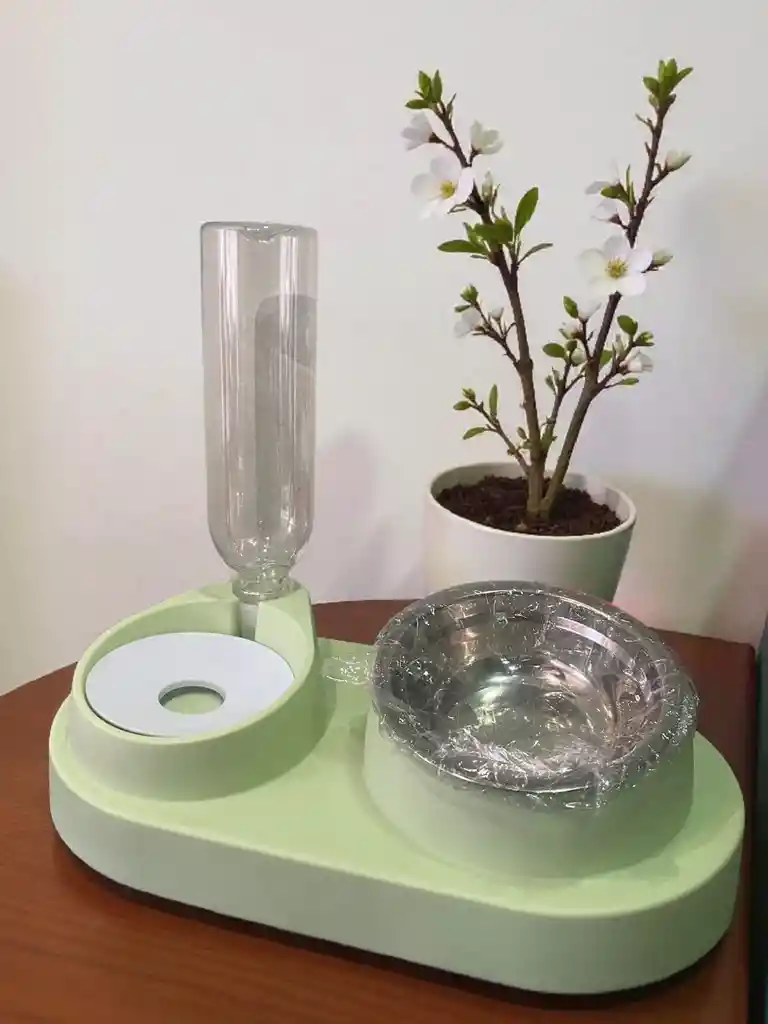 Alimenta e hidrata a tu mascota sin esfuerzo 🐾💧 Este comedero doble es perfecto para quienes buscan comodidad y orden. ✅ Dispensador automático de agua ✅ Platos desmontables para fácil limpieza ✅ Base antideslizante ✅ Ideal para perros y gatos medianos 💚 ¡Practicidad, diseño y bienestar en un solo producto