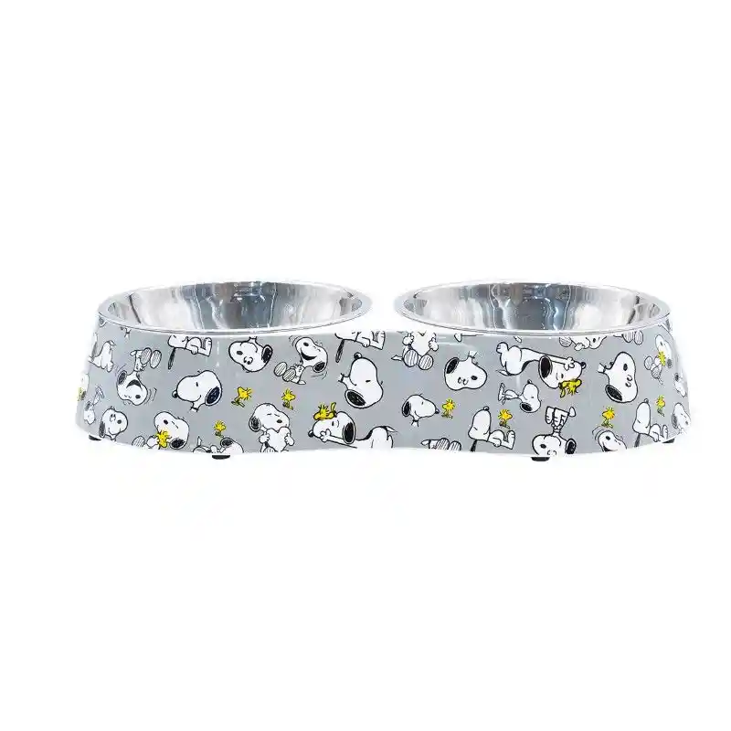 Hermoso comedero en Melamina doble para perros motivo Snoopy. Su bowl interior en acero inoxidable es removible para lavado. Es antideslizante. Su altura es 5.5 cm y diámentro de cada bowl es 14 cm.