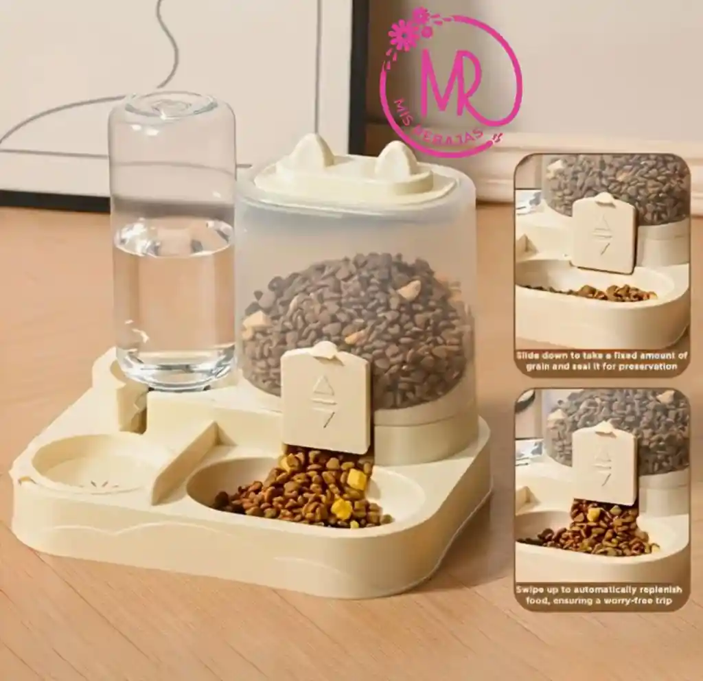 El dispensador de agua de 400 ml se recarga automáticamente por gravedad. Fabricado con material de polipropileno (PP) apto para uso alimentario. El artículo es un comedero y bebedero automático para mascotas con sistema de alimentación por gravedad. Funcionamiento por gravedad: El sistema dispensa automáticamente comida y agua a medida que las mascotas consumen, sin necesidad de electricidad ni baterías. Está fabricado con plástico PP de grado alimenticio, seguro para las mascotas. Gran capacidad: Los depósitos tienen una capacidad generosa para asegurar que las mascotas tengan acceso a comida y agua durante varios días.