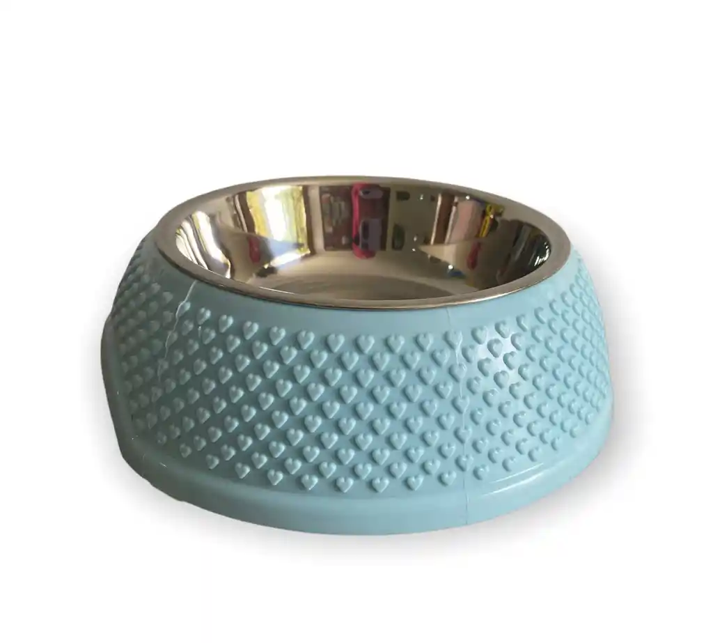 Comedero/Bebedero Corazones Azul Claro, 14 cm de diámetro