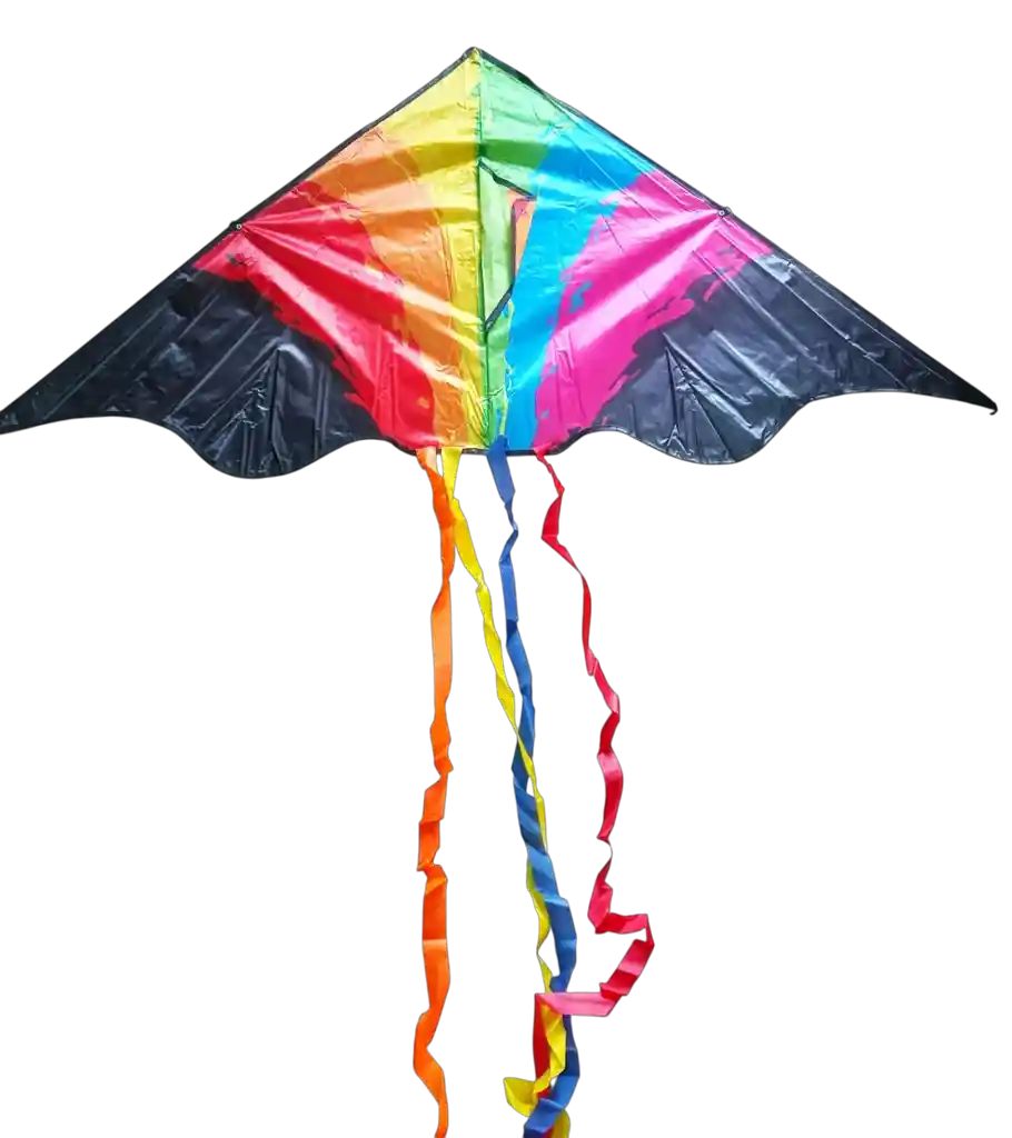 Cometa Triangular: AGUILA Material: Tela satín poliéster resistente al agua y al viento Estructura: flexible, resistente a impactos Medidas Ancho: 140cm Altura: 90cm