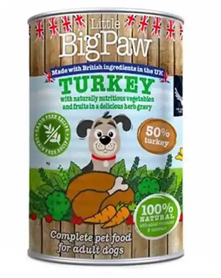 Alimento húmedo de Pavo con Brócoli, Zanahorias y Arándanos en una rica salsa de hierbas, completo para perros adultos de todas las razas y tamaños.