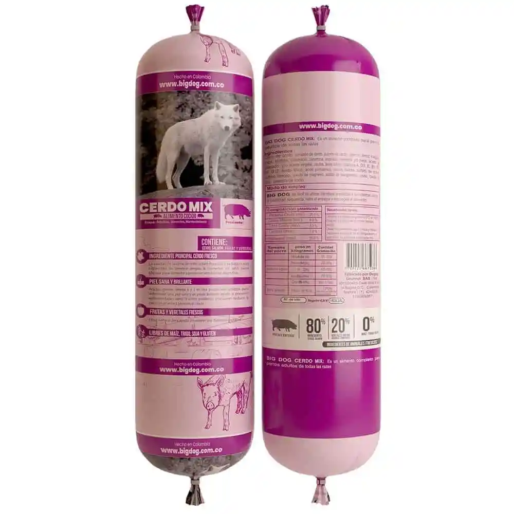 Descubre la deliciosa revolución en la alimentación canina! La comida natural para perros cocida al vapor Bigdog Cerdo Mix de 500 gr es la elección perfecta para tu compañero de cuatro patas. Repleta de carne real de cerdo, salmón fresco, frutas y verduras naturales, esta fórmula 100% natural es el regalo definitivo para tu peludito. ¿Buscas lo mejor para tu amigo fiel? ¡Lo has encontrado! Te garantizamos la mejor nutrición, cuidando su barriguita para que esté siempre agradecida. Además, este alimento está libre de maíz, trigo, soya y gluten, adaptándose a todas las razas y promoviendo un pelaje brillante y saludable.