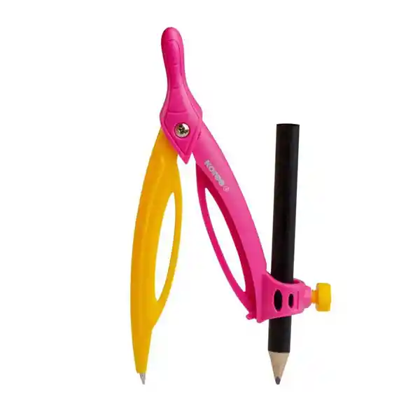 Compás Escolar Kompasito con Lápiz Kores - Compas plástico que combina ergonomía y seguridad - Con adaptador que permite ser utilizado con rotulador, lápices, bolígrafos, - Realiza círculos con hasta 260 mm de diámetro - Incluye Lápiz Grafito
