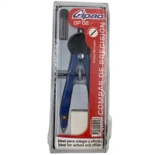 GP 08: Viene en caja acrílica Con mina 2mm. Tiene borrador. Incluye repuestos de mina. ¿Para qué sirve el compás? El compás es un instrumento que sirve para trazar círculos o arcos de circunferencia. También se puede utilizar como herramienta para tomar distancias, en particular en los mapas.