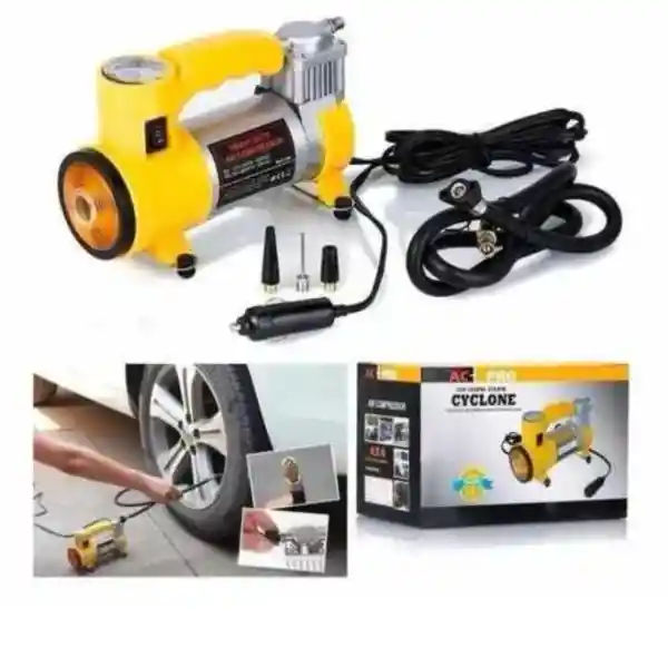 El Compresor Inflador De Aire Llanta Carro Vehículo Automático en color Amarillo es la herramienta perfecta para mantener tus neumáticos siempre en óptimas condiciones. Con un caudal de aire de 35 l/min y una presión máxima de 150 psi, podrás inflar tus llantas de forma rápida y eficiente. Su marca AC-PRO garantiza calidad y durabilidad en cada uso. Además, su diseño mini y portátil te permite llevarlo a cualquier lugar sin complicaciones. Incluso cuenta con una linterna incorporada para brindarte mayor visibilidad en situaciones de poca luz. No pierdas la oportunidad de adquirir este modelo Cyclone air150, alimentado por electricidad, y asegúrate de tener siempre un compresor confiable a tu disposición.