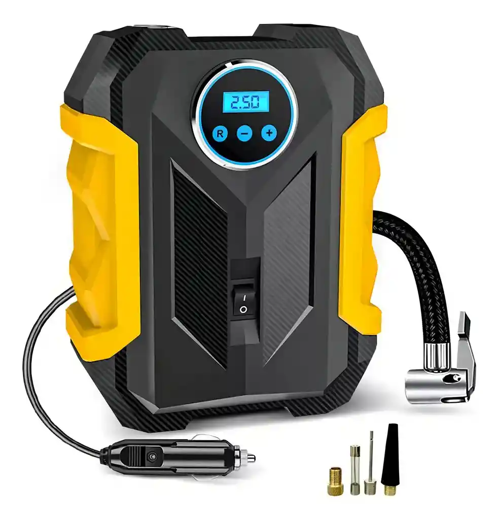 💨 Compresor de Aire Carsun Portátil Potente El Compresor de Aire Carsun es un equipo portátil y potente, diseñado para inflar llantas de autos, bicicletas, motos y balones de manera rápida y eficiente. Su tamaño compacto permite transportarlo fácilmente y usarlo en cualquier lugar, ideal para emergencias o uso cotidiano. ✅ Portátil y ligero: fácil de guardar en el maletero o llevar a cualquier lugar ✅ Alta potencia: infla llantas grandes y pequeñas en minutos ✅ Versátil: compatible con diferentes tipos de válvula (autos, bicicletas, balones) ✅ Seguridad y control: incorpora medidor de presión y apagado automático en algunos modelos ✅ Uso práctico: toma de corriente de 12 V Perfecto para viajes, talleres y uso doméstico, combina comodidad, eficiencia y seguridad en un solo equipo.