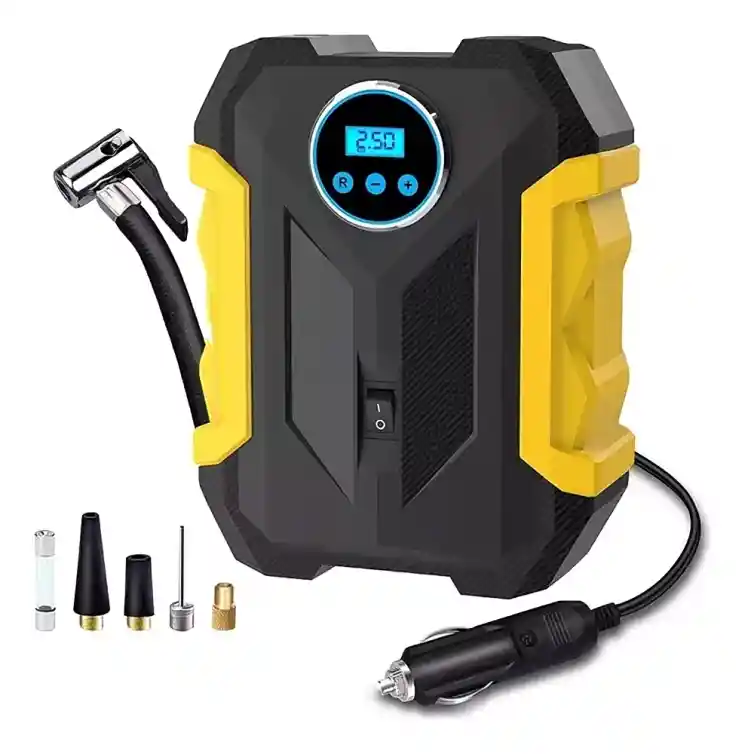 Tipo de artículo: bombas -Tipo de Material: ABS + componente electrónico -Altura del artículo: 15,5 cm -Diámetro del artículo: 8cm -Ancho del artículo: 19,5 cm -Nombre del modelo: bomba de aire ywhg001 -Peso del artículo: 0,93 kg -Longitud del cable del mechero: 3 m -Potencia: 120W -Presión máxima: 150PSI -Tipo: Inflador de neumáticos de coche -Función: Para neumáticos de coche, bicicleta, RV y otros Inflatables. -Compresor de aire automático: Inflador de neumáticos 12V -Características especiales: pantalla de visualización Digital CARACTERÍSITICAS ADICONALES -Pantalla digital de alta definición, Pantalla LED grande, toda la información es claramente visible. -Diseño compacto y ligero pero potente, fácil de transportar, se pueden colocar múltiples posiciones en el automóvil -Se puede cambiar la medida de la presión: bar, psi - Apagado automático - Pantalla digital retroiluminada - Luz LED - Compacto y portátil - Amplia aplicación