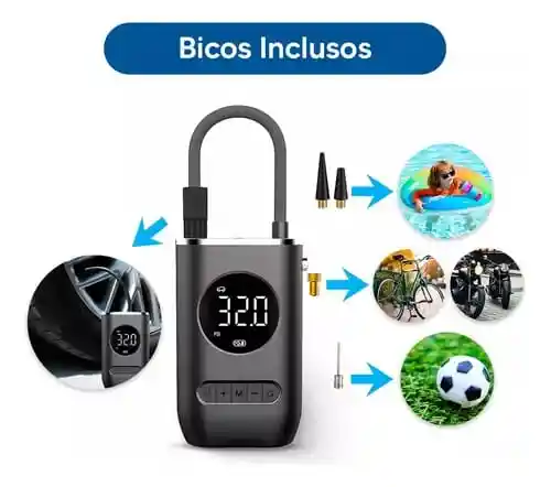 Compresor Aire Digital Inflador Llantas, Balones, Neumáticos.. Infla tus llantas y pelotas en segundos con nuestro Compresor de Aire Digital, una herramienta portátil y fácil de usar que garantiza precisión y eficiencia en cada uso. DESCRIPCIÓN: El compresor de aire digital es una herramienta versátil y esencial para mantener en óptimas condiciones llantas, pelotas y otros objetos inflables. Equipado con una pantalla digital de fácil lectura, este dispositivo permite ajustar la presión deseada con precisión y controlar el proceso de inflado en tiempo real. Su diseño compacto y portátil lo hace ideal para llevar en el coche, garantizando que siempre estés preparado para emergencias en la carretera. Además, cuenta con varias boquillas intercambiables que lo hacen compatible con una amplia gama de objetos, desde neumáticos de automóviles y bicicletas hasta balones deportivos y juguetes inflables. Este compresor de aire digital no solo es práctico, sino también fácil de usar. Con su función de apagado automático, se detiene una vez que se ha alcanzado la presión preestablecida, evitando el riesgo de sobreinflado y asegurando la seguridad. Su potente motor permite un inflado rápido y eficiente, ahorrándote tiempo y esfuerzo. Además, incluye una luz LED incorporada que proporciona visibilidad en situaciones de poca luz, como emergencias nocturnas. Este dispositivo es una solución confiable y conveniente para mantener tus neumáticos y otros inflables siempre en perfecto estado, haciéndolo un accesorio indispensable para cualquier hogar o vehículo. CARACTERISTICAS - Pantalla digital: Permite ajustar y visualizar la presión con precisión. - Portátil y compacto: Ideal para llevar en el coche o guardar en casa. - Boquillas intercambiables: Compatible con una variedad de objetos inflables. - Rápido y eficiente: Motor potente para inflado rápido. - Versatilidad: Adecuado para neumáticos de automóviles, bicicletas y balones deportivos. QUE INCLUYE LA COMPRA x1 Compresor x1 Cable x2 Boquillas