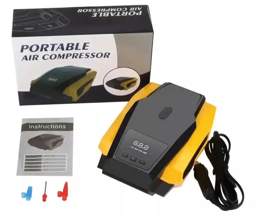 Este moderno compresor de aire es fácil de usar, con una presión de neumáticos preestablecida precisa y se puede inflar. Cualquiera puede hacerlo de forma rápida y sencilla. Utiliza un cómodo cabezal de inflado, que se puede configurar inmediatamente presionando el botón, sin necesidad de ponérselo, y el cuerpo es pequeño y fácil de transportar. Esta bomba de coche compacta utiliza un diseño creativo y considerado. Es realmente cómodo para el uso diario, no solo para el automóvil, sino también perfecto para bicicletas, motocicletas, SUV de tamaño mediano, equipos deportivos como flotadores, juguetes para la piscina, baloncesto, fútbol, pelotas deportivas y otros botes inflables. Nuestro inflador de neumáticos digital tiene el exclusivo movimiento original del turbocompresor, que es más potente, menos ruidoso y más estable. Es útil en el coche en caso de baja presión de los neumáticos en la carretera. CARACTERISTICAS -De 5 a 8 minutos demora inflando el neumático -Portátil y cómodo para transportar. -Estándares de implementación: GB4706 1-2005 -Precisión de medición de presión: +-0.5PSI -Medición de presión máxima:260PSI -Voltaje de entrada: CC12V -Presión máxima: 120 -Presión barométrica máxima: 150PSI -Versión: mini -Pantalla puede modificar aumentar o disminuir la presión. -Incluye: 4 válvulas para diferentes ingresos, pelotas, bicicletas, colchones inflables, juguetes de piscina -Pantalla LCD digital -Hecho en china -Receptáculo de cigarrillos: DC12V Cuenta con luz DIMENSIONES CAJA Largo: 25 cm Ancho: 9 cm Alto: 16 cm PRODUCTO Largo: 24 cm Ancho: 16 cm Alto: 9 cm Cable conexión enciende 250 cm Manguera de compresor: 50 cm CONTENIDO CAJA Compresor de aire 4 válvulas para diferentes ingresos. Instrucciones en ingles RECOMENDACIONES 1. NO utilice el inflador en automóviles grandes como camiones o furgonetas. 2. SIEMPRE encienda el motor del automóvil mientras el inflador esté funcionando. 3. Para uso con tomas de corriente CC (CC 12 V, 10 A). 4.NO utilice el inflador continuamente durante más de 10 minutos. Deje que la unidad se enfríe entre usos. 5. Normalmente, se necesitan aproximadamente de 5 a 8 minutos para inflar los neumáticos a la presión adecuada de 220 KPA o un poco más para neumáticos más grandes. Si la presión aumenta rápidamente a 490 KPA en aproximadamente 2 a 3 minutos, desenchufe el cable de alimentación y renueve el conector de la manguera de aire. Entonces empieza de nuevo. 6.NO deje el inflador desatendido. ¡NO INFLAR DEMASIADO! 7. SIEMPRE tire hacia arriba de la llave del conector de la manguera de aire después de su uso. 8. Asegúrese de que el receptáculo del encendedor esté funcionando. 9. Mantenga el inflador fuera del alcance de los niños y guárdelo en un lugar seco. 10.Evite caídas o inmersión en arena.