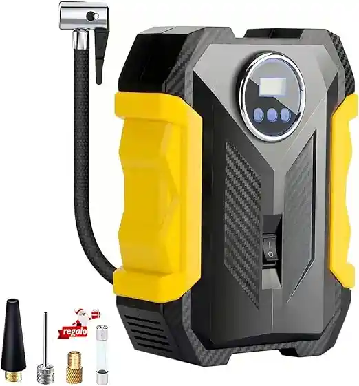 【Fácil de usar y apagado automático】Conecte el cable de alimentación del compresor de aire portátil a la toma de corriente de 12 V del automóvil, luego presione la boquilla de inflado en la válvula del neumático, establezca el valor de presión requerido por el neumático y presione el interruptor para comenzar a inflar. La bomba del compresor de aire se apagará automáticamente cuando alcance la presión deseada en los neumáticos. 【Presión máxima de trabajo de 150 PSI】 Con una presión máxima de 150 PSI y un flujo de aire de 35 l/min. Puede inflar el neumático de automóvil 195/65/R15 de 0 a 35 psi en menos de 5 minutos. Mucho más eficaz y rápida que la bomba tradicional. Medidor de presión de neumáticos preciso incorporado. 【Pantalla digital e iluminación LED】La bomba del compresor de aire está equipada con una pantalla grande de alta precisión y alto brillo para ayudarlo a verificar la presión de los neumáticos y preestablecer los valores de presión de los neumáticos. El inflador de neumáticos digital está equipado con luces LED brillantes y duraderas que se pueden usar fácilmente incluso en la oscuridad, para que pueda volver a inflarlo por la noche o verlo rápidamente en caminos rurales oscuros y remotos. 【Multiusos】 La bomba del compresor de aire tiene un cable de alimentación de 10 pies y adaptadores inflables (3 boquillas adicionales) que permiten llegar a todos los neumáticos de su automóvil, bicicleta, motor, vehículo todo terreno, sedán compacto o mediano, SUV, colchón de aire, botes inflables, pelotas y otros inflables (pero no admiten camiones grandes o camiones a motor). 【Seguro estable y duradero】 Esta bomba compresora de aire utiliza un movimiento de cobre y un cilindro de metal. Caudales de aire del producto de hasta 35 l/min. Durante el uso, el producto es muy estable. La rápida disipación del calor puede prolongar la vida útil del movimiento. seguro y confiable, ha pasado la certificación de seguridad internacional.