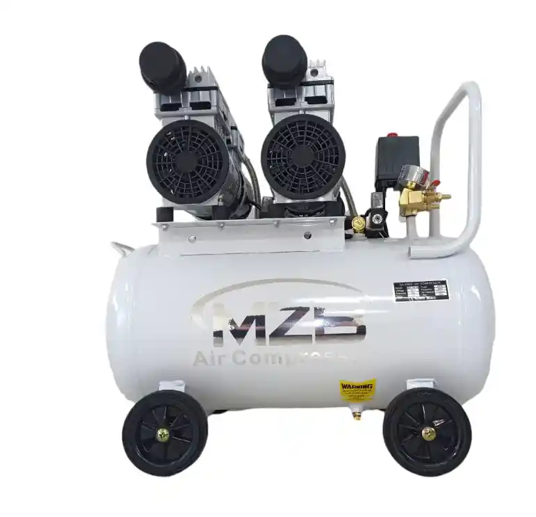 COMPRESOR LIBRE DE ACEITE TANQUE DE 24 LITROS VENTAJAS • Uso profesional • Presostato de alta precisión. • Camisa de pistón reforzada en hierro. • Manija en U para fácil transporte. CARACTERÍSTICAS • Tensión: 110V • Frecuencia: 60Hz • Velocidad: 2860 RPM • Flujo de aire: 270L/min • Potencia del motor: 1 HP x 2 • Capacidad del tanque 50 Lts • Ciclo de trabajo: 8 Horas ( no exceder las 4 cargas por hora ) • Marca USA TOOLS