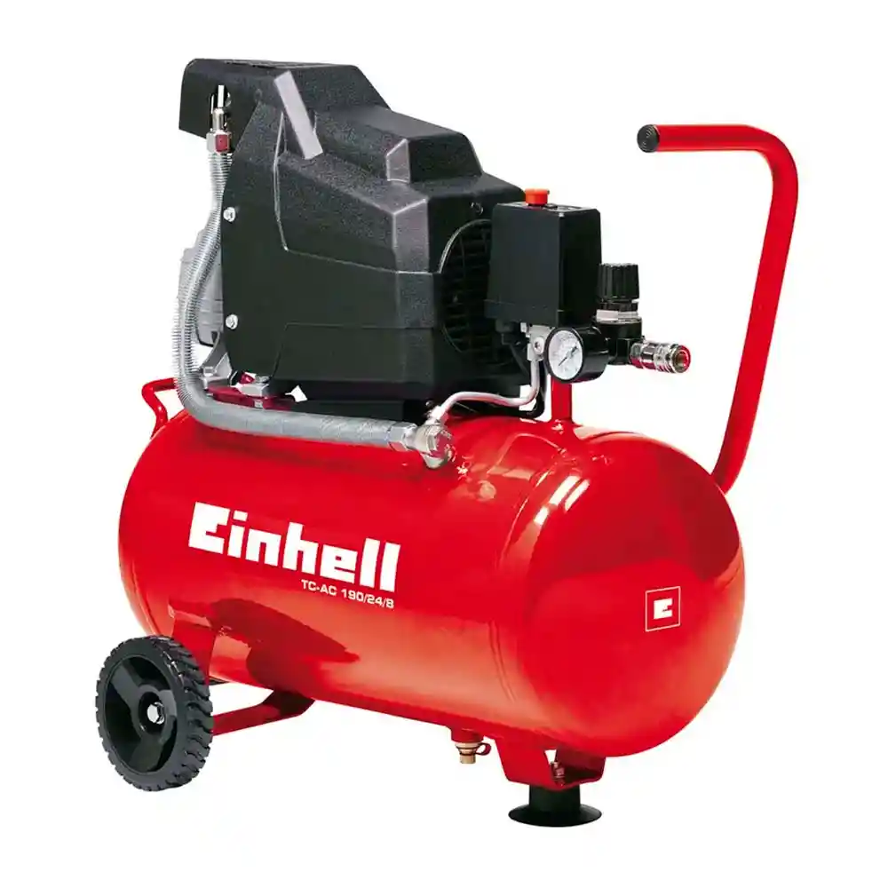 Usos • El compresor se puede utilizar para un amplio rango de operaciones, entre los que se encuentra pintura con aerógrafo, con pistola ayuda a potenciar las herramientas de construcción como lijadora de aire, llave de impacto, todo tipo de herramientas neumáticas. Características • 10 años de garantía contra la corrosión de la caldera. • Manómetro y acoplamiento rápido para una presión de funcionamiento regulada. • Para manguera de 1/4", 3/8" y 1/2" • Arranque automático y manual • Liviano, transportable, resistente y de fácil mantenimiento • 2 salidas de conexión rápida de 1/4" • Ruedas de goma y asa de transporte para transportarlo con facilidad. • Base con amortiguador de goma para reducir el ruido. • Válvula de retención, válvula de seguridad. • Un tornillo de drenaje permite un mantenimiento fácil. • Protector térmico contra sobrecalentamiento del motor • Mango para facilitar transporte Especificaciones • Capacidad del tanque 24 L • Potencia Máxima 2 1/2 HP • Potencia Nominal 1 1/2 HP • Tensión 110 V • Frecuencia 60 Hz • Potencia de salida a 7 bar de 55 Litros por minuto. • Potencia de salida a 4 bar de 75 Litros por minuto. • Potencia de salida a 0 bar de 110 Litros por minuto. • Potencia máxima del motor (S2 | tiempo S2) 1500 W 2 PS 15 min. • Tipo Monofásico • Velocidad 2.850 rpm • Presión máxima 116 PSI (8 Bar) • Flujo de aire : 165 l/min • Conductores 16 AWG x 3C con temperatura de aislamiento de 105 °C • Aislamiento Clase I • Dimensiones L 57,8 X AN 25,8 X AL 57,2 cm • Peso 21 Kg Incluye • 1 Botella de aceite monogrado SAE30 • 1 Filtro de aire • 1 Tapón de aceite • 2 Ruedas • 1 Soporte de hule • 1 Bolsa con tornillería Cuidados • Mantenga lubricado de aceite para garantizar su durabilidad. • Siempre mantenga las ventilas limpias y libres de obstrucciones para garantizar un enfriamiento adecuado del motor • Drene el tanque periódicamente para evitar que se oxide • Limpiar periódicamente el filtro de aire a fin de evitar daños internos en el compresor • Este equipo debe ser utilizado con una alimentación de 110V. Utilizar una tensión diferente daña severamente el producto