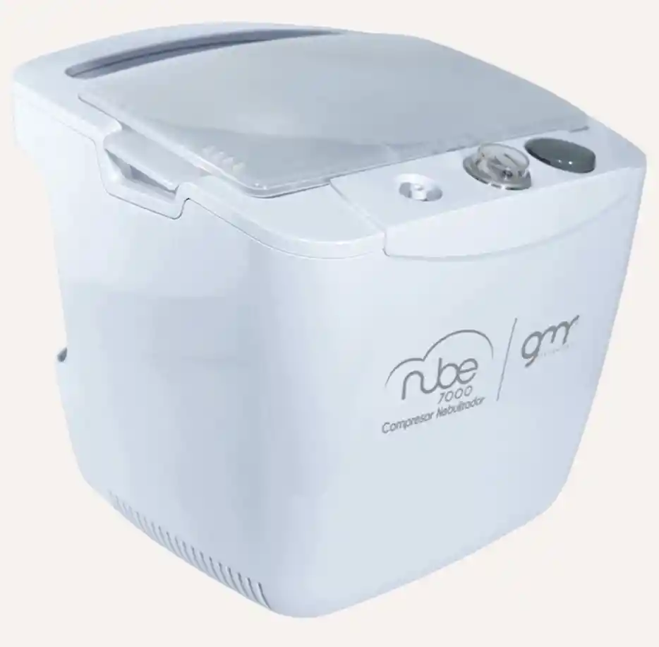 Compresor Nebulizador Nube 7000 doméstico y hospitalario. Operación a un solo toque. Operación continua. Compartimento para accesorios. Alta eficiencia. Para adultos y niños. Fácil de trasladar. Hasta 3 años de garantía.